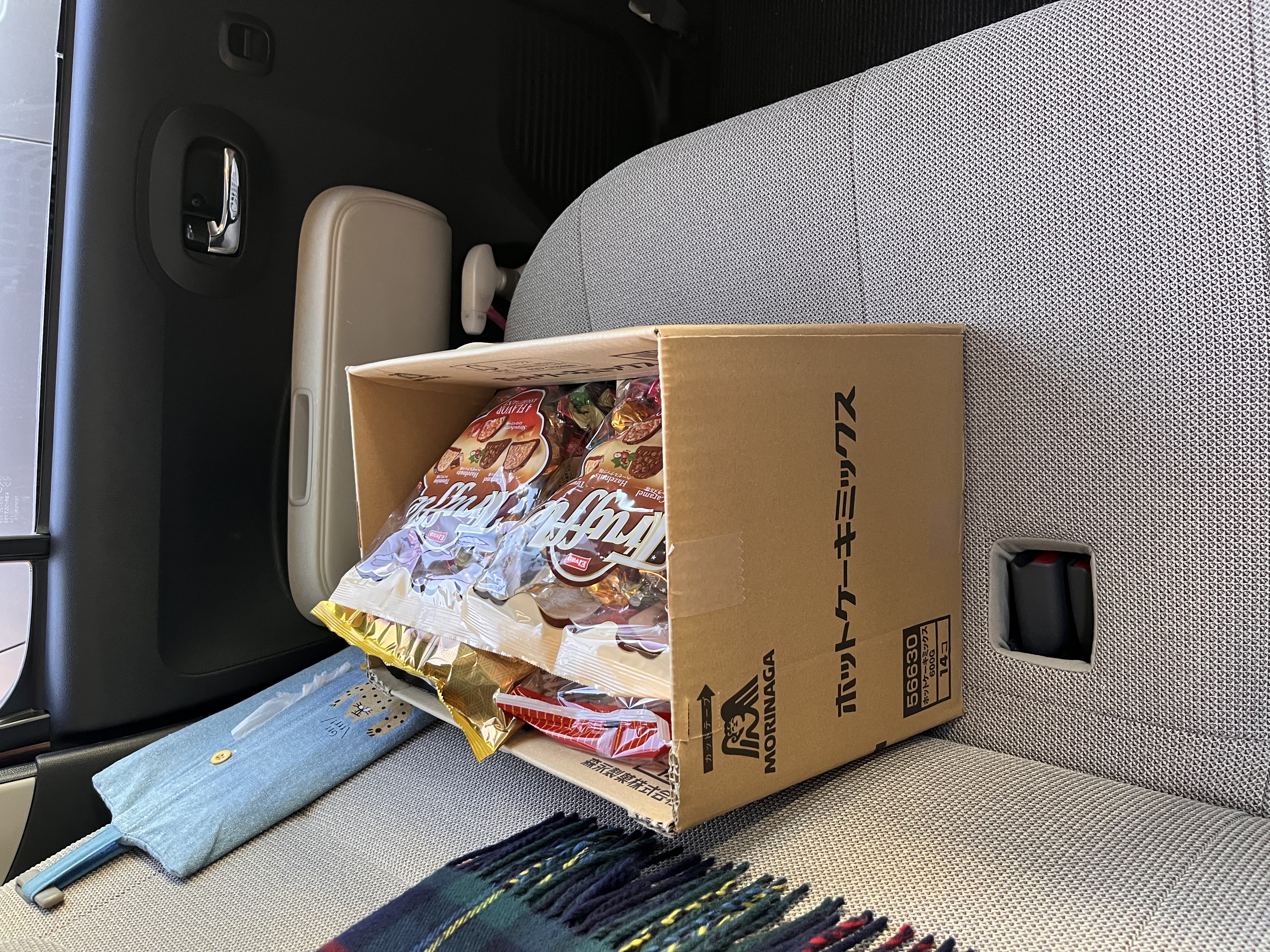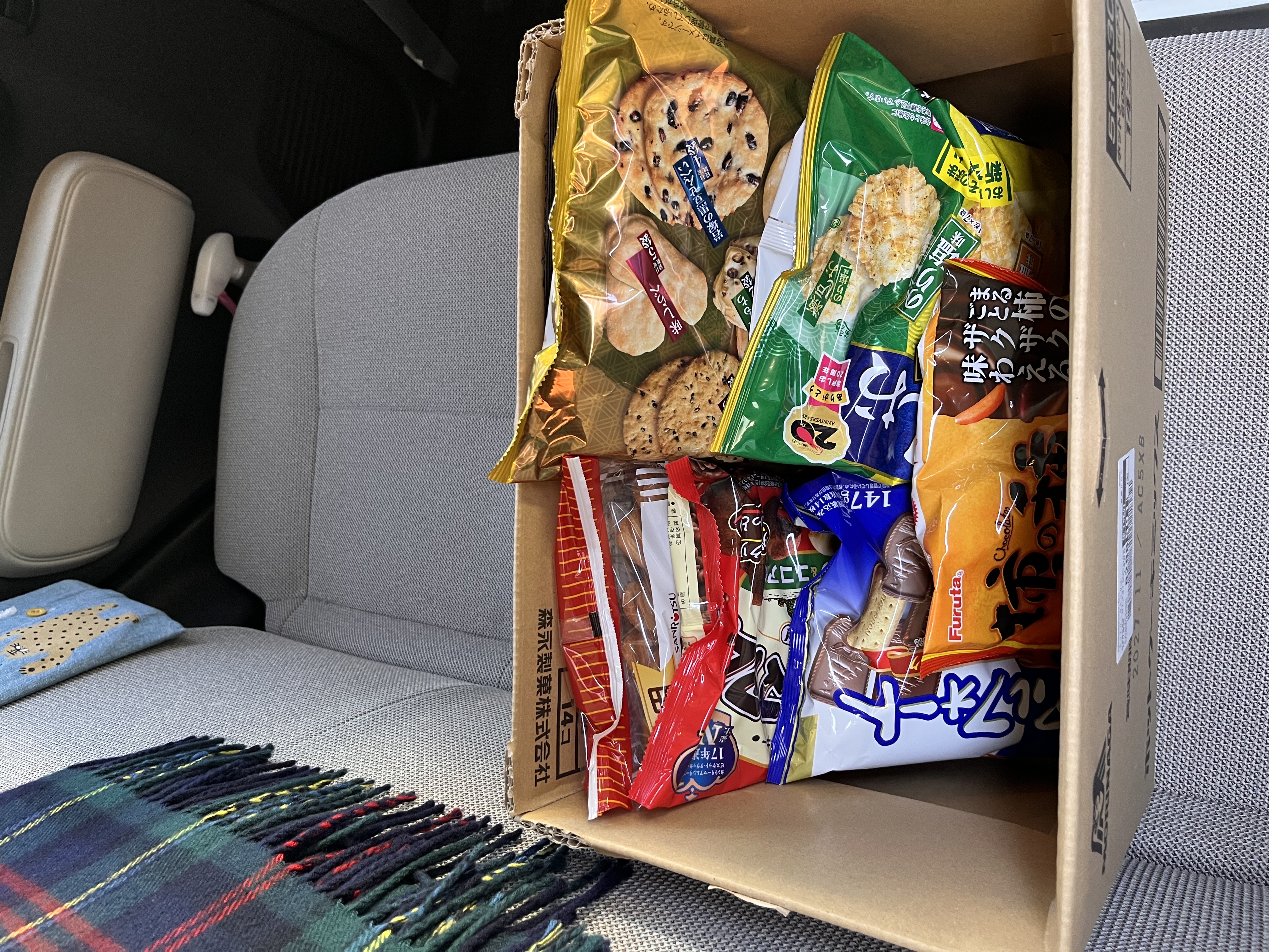 車の後部座席いっぱいに積んだ段ボール。